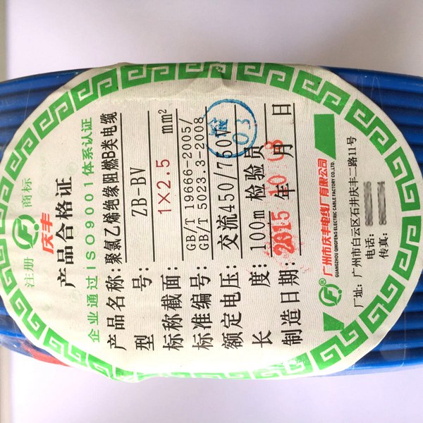 廣州慶豐電線產(chǎn)品標簽,購買請認準慶豐商標